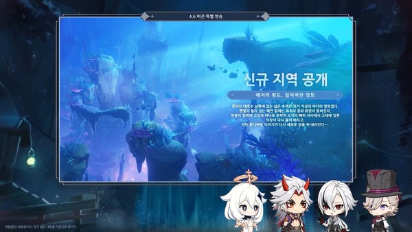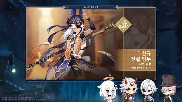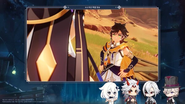 본격적인 방송 전 4.6 버전 트레일러가 공개됐다. 트레일러는 의문의 신전에서 누군가와 대치하는 사이노, 거대한 낫으로 적을 베어내는 아를레키노, 프레미네와 마찰을 빚는 리니, 아를레키노와 대적하는 리니 형제의 모습이 인상적이다. 트레일러를 감상한 성우들은 4.6 업데이트 내용을 팬들에게 소개했다.