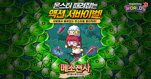 또 다른 자체 개발 월드인 ‘메소전사’는 탄막 슈팅 장르로, 스테이지마다 쏟아지는 몬스터 웨이브를 격파하고 다채로운 공격 패턴을 지닌 보스를 쓰러뜨리는 방식으로 진행된다. ‘키네시스’, ‘엔젤릭 버스터’, ‘호영’ 등 ‘메이플스토리’의 반가운 캐릭터들이 니온다. 캐릭터들의 무기를 조합해 간편한 조작과 전략의 재미를 느낄 수 있다.