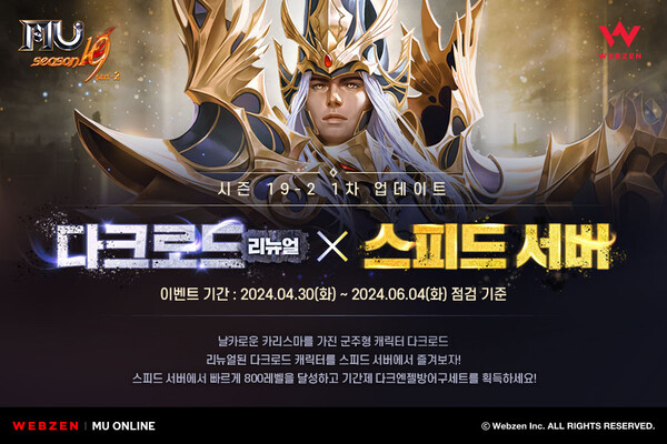웹젠(대표 김태영)이 PC MMORPG ‘뮤 온라인’에서 ‘다크로드’ 클래스를 리뉴얼하고 ‘스피드 서버’를 운영한다.