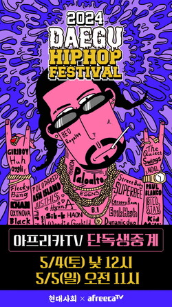 SOOP은 4일과 5일 대구스타디움 보조 경기장에서 개최되는 '2024 대구힙합페스티벌'을 단독으로 전 세계 동시 생중계한다. 2022년과 2023년에 이어 올해까지 3회 연속 중계다.