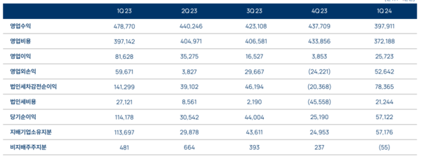 엔씨소프트는 2024년 1분기 매출 3979억 원, 영업이익 257억 원, 당기순이익은 571억 원을 기록했다. 매출은 전분기 대비 9%, 전년 동기 대비 17% 감소했으며 영업이익은 전분기 대비 568% 증가, 전년 동기 대비 68% 감소했다. 당기순이익은 전분기 대비 127% 상승했으며, 전년 동기 대비 50% 하락했다.