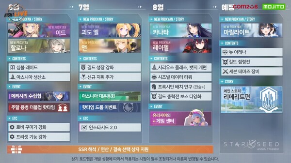 신규 프록시안 괴도 엘, 앤 출시 외 길드 콘텐츠 확장을 준비 중이다. 신규 지휘 스킬도 추가되며, 아스니아 대운동회라는 SD 캐릭터 위주 이벤트를 새롭게 선보인다. 핫타임 드롭 이벤트도 진행하며, 인스타시드 2.0도 업데이트한다.