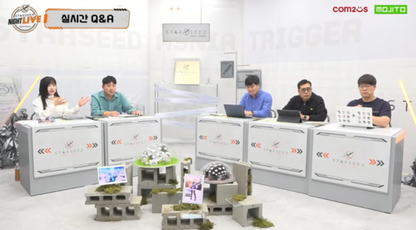 이후 한 대표가 앞으로의 스타시드 업데이트 일정을 소개하고, 이들은 사전 선정 질문 답변 및 라이브 방송을 지켜보는 이용자들과 실시간 질의응답을 가졌다. 프리미엄 모집, 중구난방한 패스 및 패키지, 천장 추가 등 예민한 질문 역시 피하지 않고 답했다.