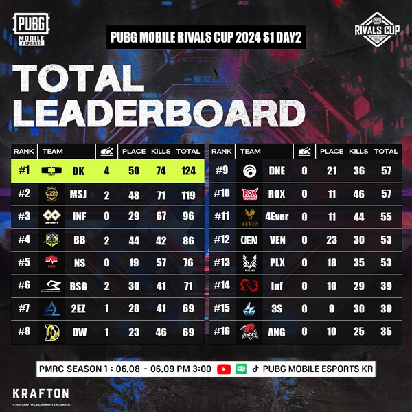 한국에서는 ‘배틀그라운드 모바일 프로 시리즈(PMPS) 2024’ 시즌 1 우승팀인 DRX가 PMWC 진출을 확정한 가운데, 2위부터 9위까지의 8개 팀이 이번 PMRC에 참가했다.