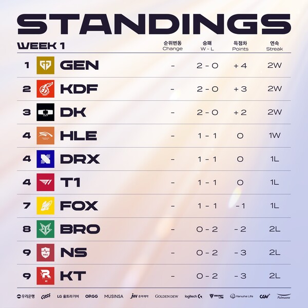 지난 스프링 스플릿에서 플레이오프에 진출하긴 했지만 3강 안에 들지는 못했던 디플러스 기아와 광동 프릭스가 서머 1주 차에서 돋보이는 활약을 펼쳤다.