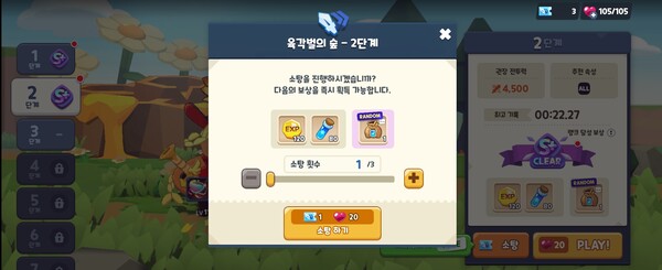 '프리코네', 혹은 '블루아카이브'처럼 메인 스테이지와 성장 던전 입장에 필요한 재화를 나눠놓지 않았다. 모두 '하트 젤리'를 소모해 입장해야 한다. 모든 스테이지를 클리어한 후반에는 문제되지 않겠지만, 초반에는 매우 불편한 제약이다.
