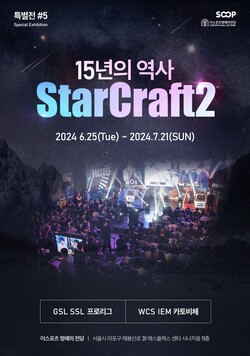 SOOP은 6월 25일부터 7월 21일까지 서울시 마포구 ‘에스플렉스센터 시너지움’ 11층에 위치한 ‘이스포츠 명예의 전당’에서 네 번째 특별전 ‘15년의 역사 스타크래프트2’를 개최한다다.