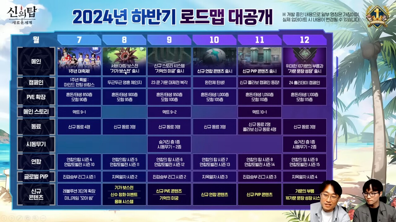 정언산 신의 탑 PD는 "4월 방송 이후 오랜만에 인사드린다. 1주년을 맞이해 많은 것을 준비했다. 유저들의 피드백도 항상 확인 중이다. 그동안 궁금했던 것들도 해소하는 시간을 가져보겠다"며 방송을 진행했다.