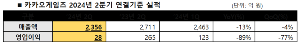 카카오게임즈(대표 한상우)가 7일 2024년 2분기 실적을 발표했다.