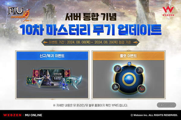 웹젠(대표 김태영)이 PC MMORPG ‘뮤 온라인’에서 일부 서버 통합과 다양한 이벤트를 진행한다.