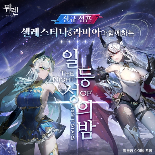 그라비티는 뮈렌: 천년의 여정의 첫 업데이트를 기념해 다채로운 이벤트를 준비했다. 먼저 ‘일등성의 밤’ 이벤트는 8월 27일 점검 후부터 9월 24일 오전 10시까지 진행하며, 14일 로그인 보상, 일일 퀘스트, 상점, 고난도의 전투 스테이지 등 다양한 콘텐츠로 구성했다. 별들의 전쟁, 밤의 추적, 스카이패스에서는 테마별 전투 스테이지를 즐긴다. 도전 스테이지 스카이패스에서는 유저들 간 랭킹을 겨룬다.
