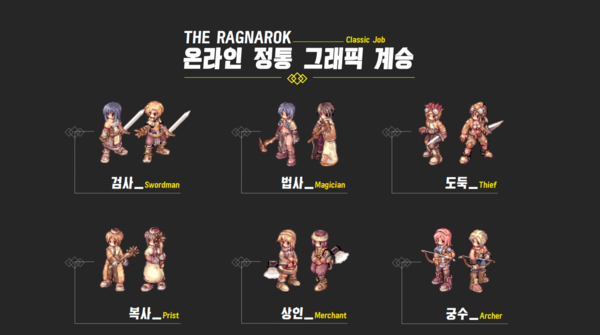 현재 리소스 개발, 스킬 등 작업 중인 내용이라 자세하게 알려드리기는 어렵다. 힌트라고 한다면 6개 직업군의 확장이라고봐주시면 좋을 것 같다. 다른 타이틀에는 공개돼지 않은 직업이다. 더 라그나로크에서 가장 먼저 선보이게 될 것 같다.