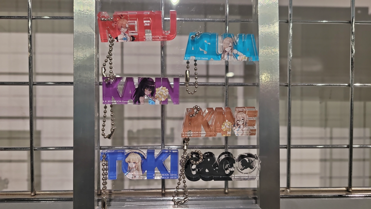 전시품 구경을 마치고 반대편으로 가면 3.5주년 한정 굿즈들을 만나볼 수 있다. 토키(바니걸)이 사용하던 암기어부터 카드 케이스, 아크릴 스탠드, 태피스트리, 배지, 텀블러 등 다양한 물품이 나열돼 있다.