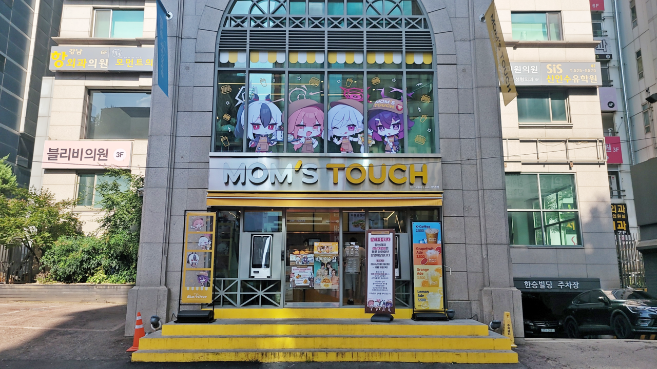 포토존은 매장 3층에 마련돼 있다. 흥신소 68 학생들이 맘스터치 유니폼을 입고 포즈를 취하고 있다. 등신대를 종이가 아닌 아크릴로 제작했다. 초대형 아크릴 스탠드를 포토존에 설치한 셈이다.
