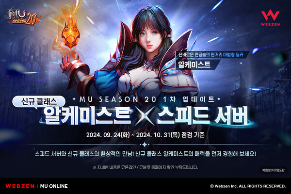 ‘뮤 온라인’이 ‘알케미스트’ 클래스와 스피드 서버를 추가한다. ‘알케미스트’는 에너지 스탯을 보유한 원거리 마법형 딜러 클래스로 전용 무기인 ‘완드’와 ‘엘릭서’를 사용한다.
