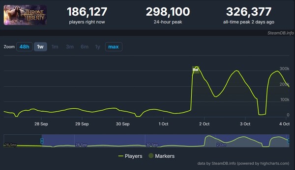 출시 당일 TL은 일일 최대 동시 접속자 수 30만 명을 돌파하며 돌풍을 일으켰다. 통계 사이트 스팀 DB에 의하면 서비스 4일 차인 4일 오전에 일일 최대 동시 접속자 29만 명, 현재 접속자 18만을 기록하며 순항을 지속 중이다.