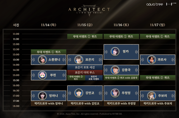 특히 16일 토요일에는 연예인 ‘김종국’과 ‘릴카’, ‘우정잉’ 등 유명 인플루언서들이 직접 아키텍트를 소개하고 플레이하는 등 자리를 마련해 소통할 예정이다.