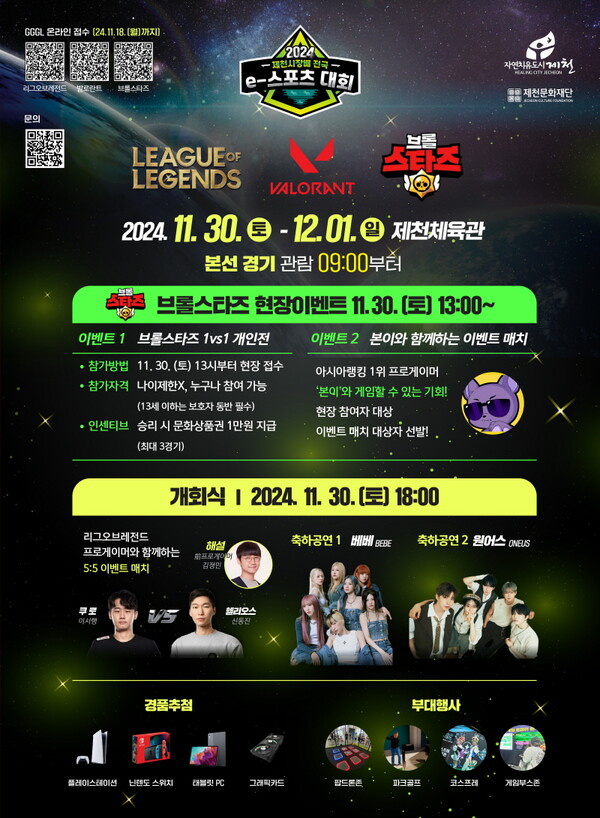 충북 제천시와 제천문화재단이 ‘2024 제천시장배 전국 e스포츠 대회’를 11월 30일, 12월 1일 양일간 체천 체육관에서 연다. 올해 2회째로, 지난해 단일 지자체 e스포츠 행사 중 전국 최대 규모다.