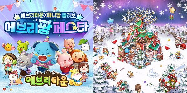 게임 이용자 모두에게 쿠폰 선물과 770여 명에게 고급 경품 등을 증정하는 ‘에브리타운’과 애니팡 시리즈의 제휴 이벤트는 1월 7일까지 이어진다.