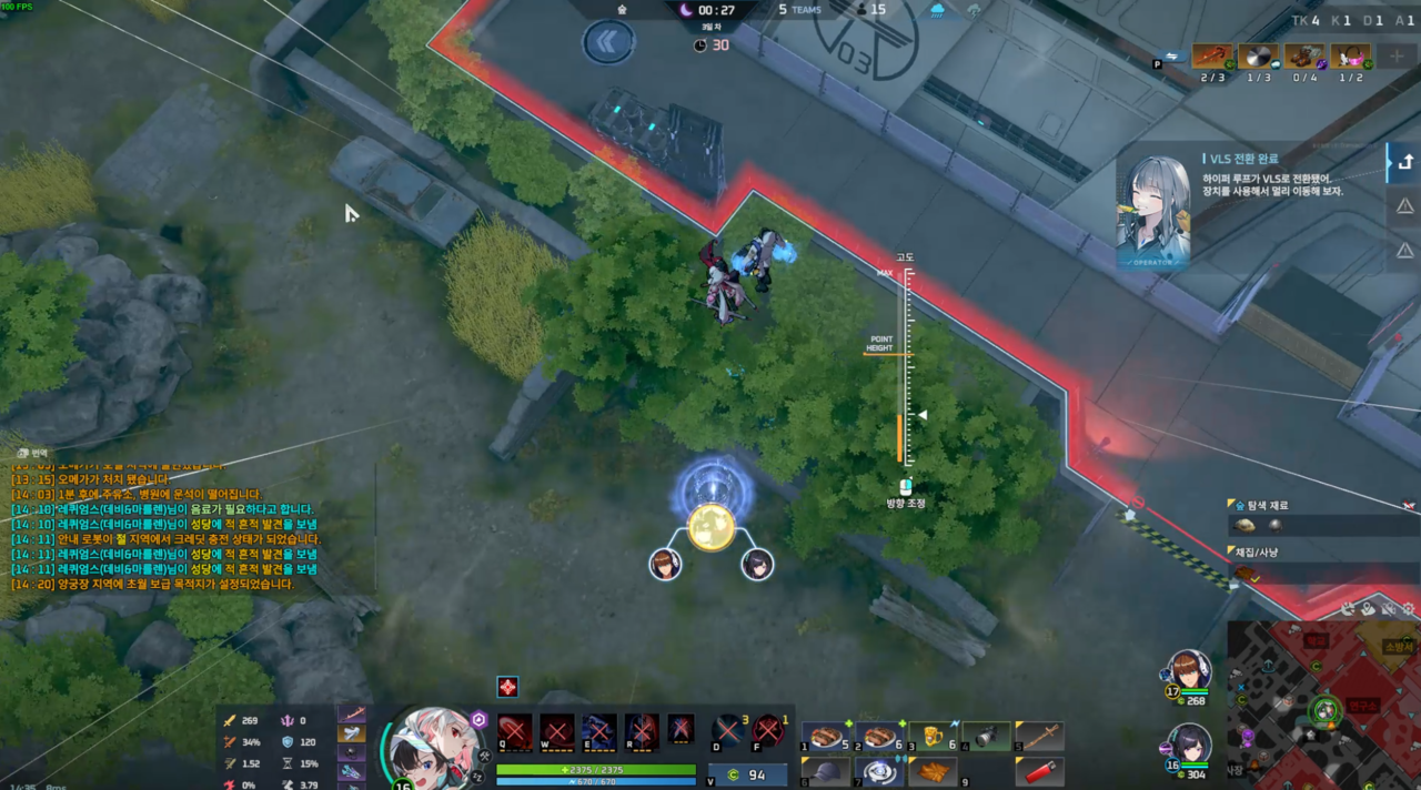 잘 성장한 팀들이 게임 중후반부에 제자리에서 VLS를 계속 이용하면서 약한 팀을 찾아다니는 광경은 보기에 썩 좋지 않았습니다. 어제 플레이를 하면서 3연속 우승을 했는데, VLS를 이용해 약한 팀들을 확인하고 처치하는 과정을 반복하니 순식간에 강해질 수 있었어요.