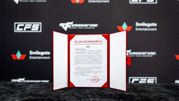 스마일게이트가 ‘크로스파이어’ e스포츠 대회인 ‘CFS 2024 그랜드 파이널’을 개최해 한중 양국간의 문화 교류와 우호 증진에 기여한 공로를 인정 받아 중국 ‘저장성 문화관광발전 유한공사’로부터 감사장을 받았다고 26일 밝혔다.