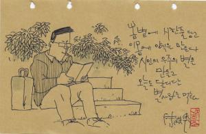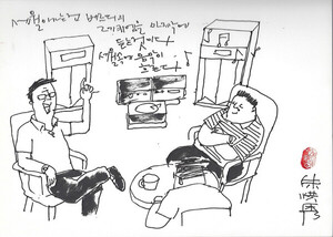 주홍수 작가는 “식당에서 밥먹다 들은 이야기, 호프집 술자리 뒷담화, 여행에서 느낀 감정 등 생활 속 감성을 시간될 때마다 그렸다. 그림 두 칸, 글로 채운 한 칸 등 세 칸에 누구나 공감할 수 있는 걸 그렸다”고 말했다.