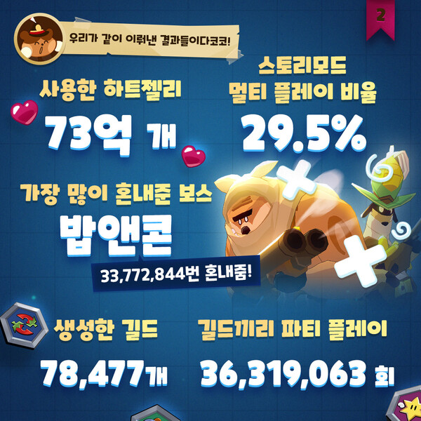 유저는 모바일 게임에서 흔히 볼 수 없는 협동액션을 통해 친구∙가족∙연인과 ‘함께하는 재미’를 충분히 즐겼다. 일반적으로 혼자 플레이하는 스토리 모드에서 다른 유저와 함께 스테이지를 클리어하는 멀티플레이 비율이 약 30%로 높았다.