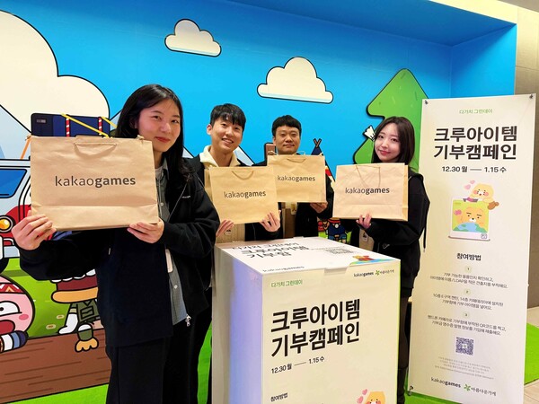 2022년부터 3회째 시행 중인 ‘크루아이템 기부 캠페인’은 카카오게임즈의 임직원 참여형 친환경 캠페인 ‘다가치 그린데이’의 일환으로, 자원 선순환을 도모하고 소외계층 이웃을 돕기 위해 기획됐다.