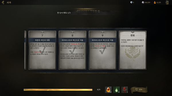사가 메뉴에 들어가면 해당 퀘스트의 단서가 표시된다. 가령 첫 번째 퀘스트는 '레이븐스 홀' 건물 앞에서 에인헤랴르의 힘에 대해 아는 사람을 찾아보자는 단서가 주어진다. 플레이어가 찾아야 할 지역이 붉은색 텍스트로 표시돼 MMORPG를 처음 플레이하는 유저도 쉽게 찾을 수 있다.