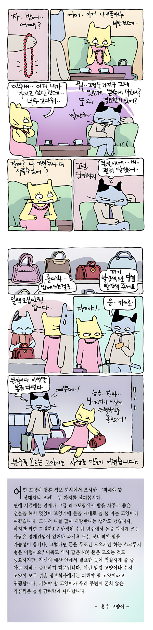 이 기사와 함께 보면 좋은 기사 주홍수의 웹툰 나옹이네 17화 ‘뉴스’ 주홍수의 웹툰 나옹이네 16화 ‘감동을 주는 법’ 주홍수의 웹툰 나옹이네 15화 ‘신을 믿는 고양이’ 주홍수의 웹툰 나옹이네 14화 ‘좋은 상사란?’ 주홍수의 웹툰 나옹이네 13화 ‘나 홀로 집에’ 주홍수의 웹툰 나옹이네 12화 '롤라이35' 주홍수의 웹툰 나옹이네 11화 '이름이란?' 새해 주홍수 생활감성 만화 ‘나옹이네’가 온다