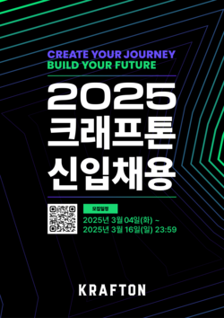 크래프톤(대표 김창한)은 게임 제작과 퍼블리싱, AI 분야의 신입 사원 채용을 실시한다. 최근 발표한 중장기 목표인 ‘Big 프랜차이즈 IP’ 확보 전략에 맞춰, 개발부터 AI 분야까지 다양한 인재를 영입해 미래 경쟁력을 높인다는 계획이다.