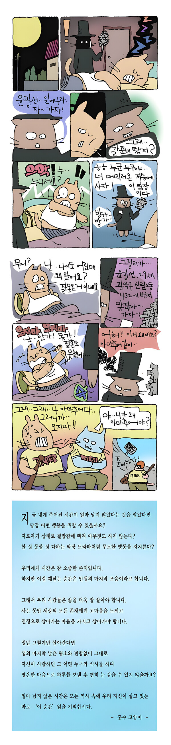 이 기사와 함께 보면 좋은 기사 주홍수의 웹툰 나옹이네 19화 ‘고양이밥' 주홍수의 웹툰 나옹이네 18화 ‘결혼상대’ 주홍수의 웹툰 나옹이네 17화 ‘뉴스’ 주홍수의 웹툰 나옹이네 16화 ‘감동을 주는 법’ 주홍수의 웹툰 나옹이네 15화 ‘신을 믿는 고양이’ 주홍수의 웹툰 나옹이네 14화 ‘좋은 상사란?’ 주홍수의 웹툰 나옹이네 13화 ‘나 홀로 집에’ 주홍수의 웹툰 나옹이네 12화 '롤라이35'