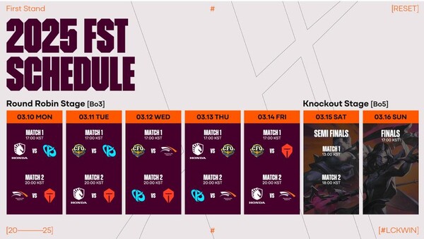 라이엇 게임즈는 3월 10일부터 16일까지 서울 LCK 아레나에서 2025 퍼스트 스탠드를 연다.