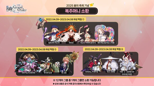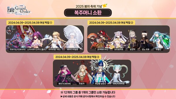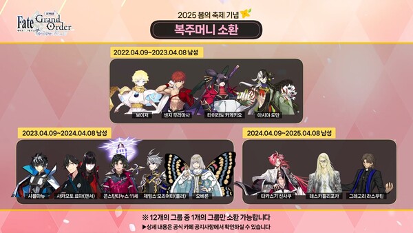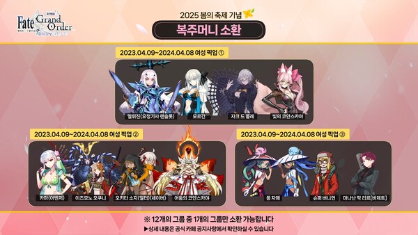픽업 기간이 오래된, 유저들이 많이 요청하는, 플레이에 도움이 되는 서번트를 분석해 독자 픽업을 진행한다. 올해 설날처럼 예상하지 못한 서번트가 나올 수 있는 반면 정말 필요했던 서번트가 적절한 타이밍에 나왔을 것이다. 당장 미래시를 밝히기 어렵지만 내부에서 많이 고민하면서 선정하니까 기대 바란다.