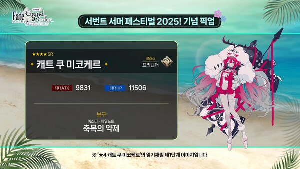 역사적이나 유명 신화 속 영웅이 아니라 페이트 시리즈 스핀오프 만화에 등장한 서번트다. 해당 서번트의 특이점을 살펴보면 보구 이펙트 문구가 한글로 표기됐다. 넷마블 개발진의 로컬라이징을 향한 노력을 알 수 있는 대목이다.