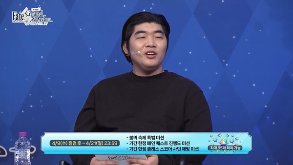 넷마블은 8일 페그오 17차 공식 방송을 진행했다. 방송은 2025 봄의 축제 기념 오프라인 행사장에서 생중계로 방영됐으며 차보경 MC를 필두로 김규환 캐스터, 스트리머 시나맨이 진행을 맡았다.