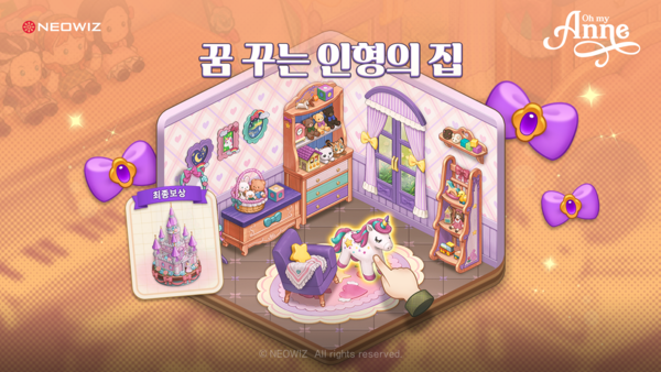 네오위즈(대표 김승철, 배태근)는 모바일 매치3 퍼즐 게임 ‘오 마이 앤’이 신규 꾸미기 콘텐츠 ‘꿈 꾸는 인형의 집’ 업데이트를 진행했다고 18일 밝혔다.