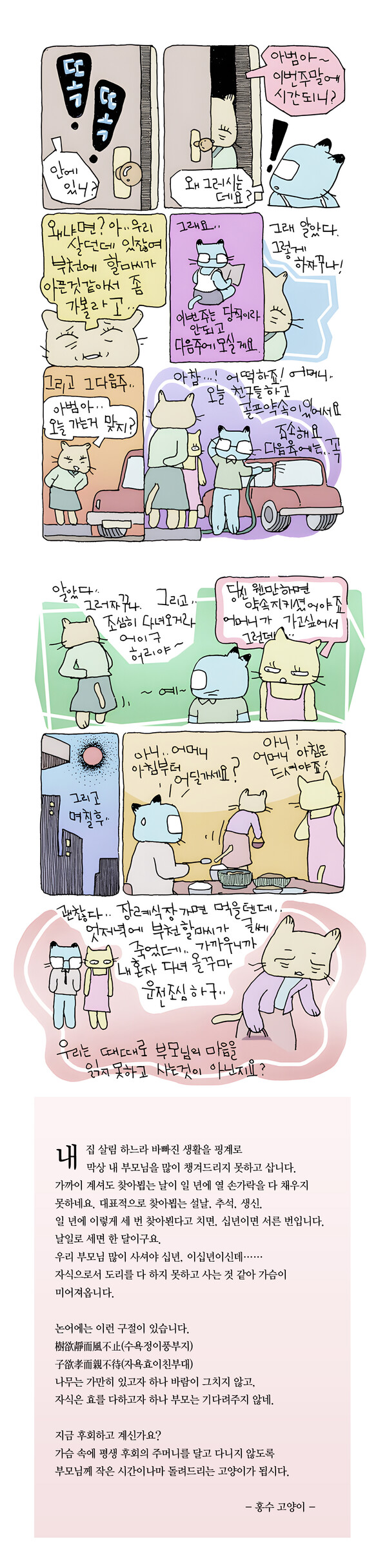 이 기사와 함께 보면 좋은 기사 주홍수의 웹툰 나옹이네 33화 ‘추억이 방울방울’ 주홍수의 웹툰 나옹이네 32화 ‘천생연분’ 주홍수의 웹툰 나옹이네 31화 ‘너 커서 뭐가 될래’ 주홍수의 웹툰 나옹이네 30화 ‘싫어하는 직장상사’ 주홍수의 웹툰 나옹이네 29화 ‘포기하고 싶을 때’ 주홍수의 웹툰 나옹이네 19화 ‘고양이밥' 주홍수의 웹툰 나옹이네 18화 ‘결혼상대’ 주홍수의 웹툰 나옹이네 17화 ‘뉴스’