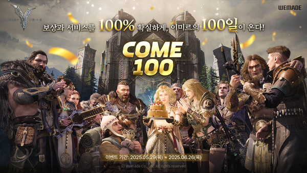위메이드(대표 박관호)는 레전드 오브 이미르 서비스 100일을 맞아 ‘COME 100’ 이벤트를 시작했다.