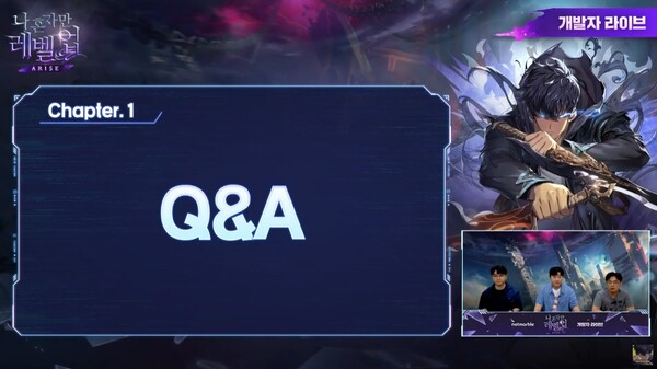 넷마블은 30일 나혼자만 레벨업 어라이즈(이하 나혼렙 어라이즈)의 개발자 라이브 방송을 진행했다. 정인호 캐스터가 진행을 맡고, 진성건 개발 총괄 PD와 이다행 사업본부장이 출연해 31일 진행될 업데이트를 소개하고 유저들의 궁금증을 해소했다.