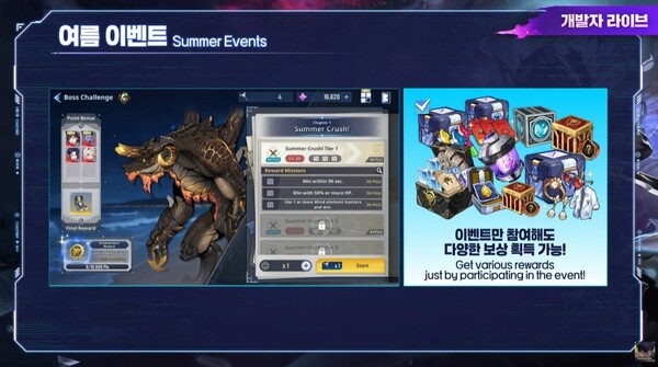또한 유저 피드백에 의거한 개선안과 신규 성장 콘텐츠도 소개했다. 시간의 전장 보상 증가 및 화마의 부채, 진 카사카의 독니, 금미호 성능이 상향 조정되며 헌터 서포터 스킬이 대거 개선된다.