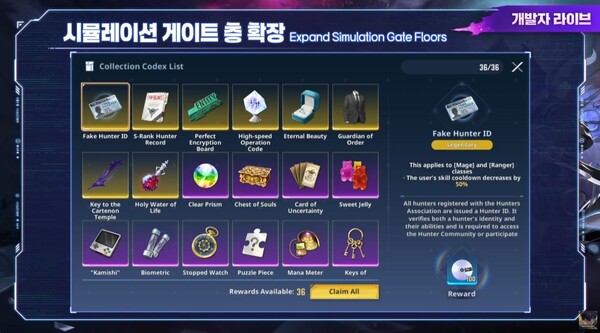 시뮬레이션 게이트가 40층까지 확장되며, 전설 등급 마법 부여 아이템도 추가된다.