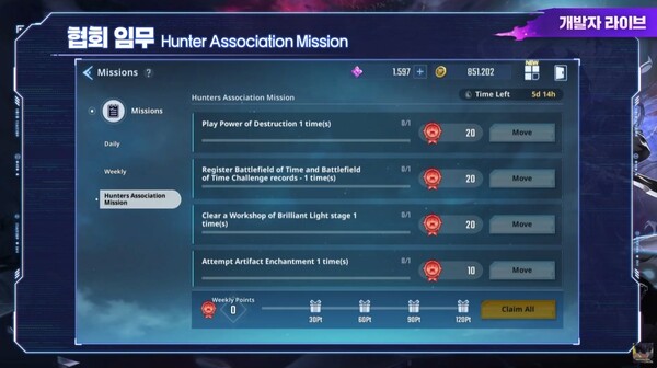 협회 임무는 새로 추가되는 주간 미션으로, 성장 격차를 완화하기 위한 콘텐츠다.
